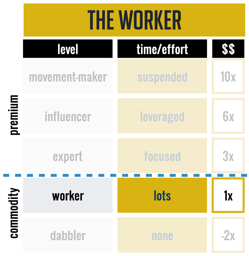 As THE WORKER, you’ve made the decision to move forward with becoming an INFLUENCER and MARKET LEADER in your space and on your topic area. This is where the work begins to gain a depth and breadth of knowledge in your space. Having a deep knowledge of the “body of work” in your topic area is the foundation of everything you create and build moving forward. Too often, people will not do the work and try to call themselves an expert only to be found out that they have no real depth of knowledge or breadth of experience to support it.